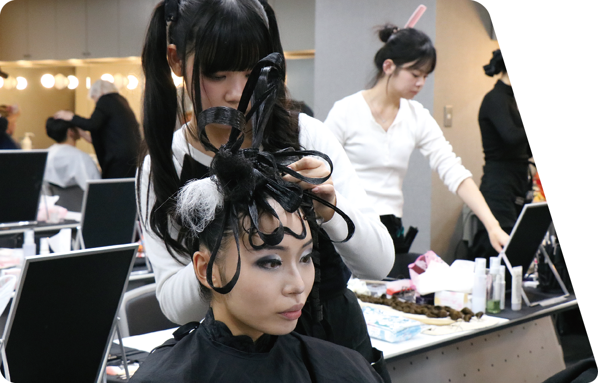メイク/ヘア/トータル/ネイル/皮膚学/マッサージ・化粧品学/ネイル特別授業(希望者)※/アロマ/造形/デッサン/フリーソーイング/スタイリング/服装史/色彩検定/パーソナルカラー/ボディフィッター/ファッション情報/着付け/PC/Photoshop/ブライダル基礎知識/就職ガイダンス/サービス接遇/英会話/美肌検定/企業研究/選択授業/検定選択授業/現場実習(希望者)