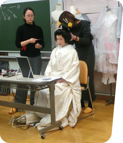 ※トータルとは…古代〜19世紀までのファッションとメイクの歴史を学び、オリジナルヘアメイクのプランニング方法・作品制作を行う授業。